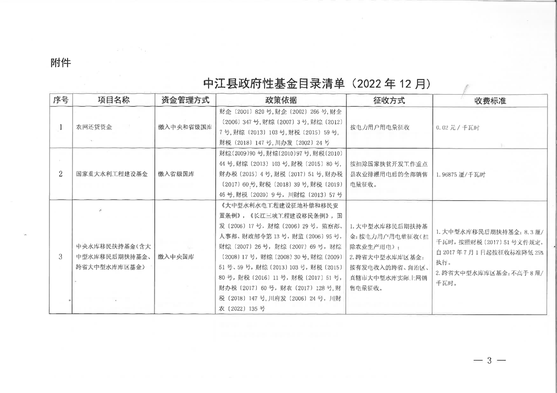 中江县财政局关于公布中江县政府性基金目录清单(2022年12月)的通知